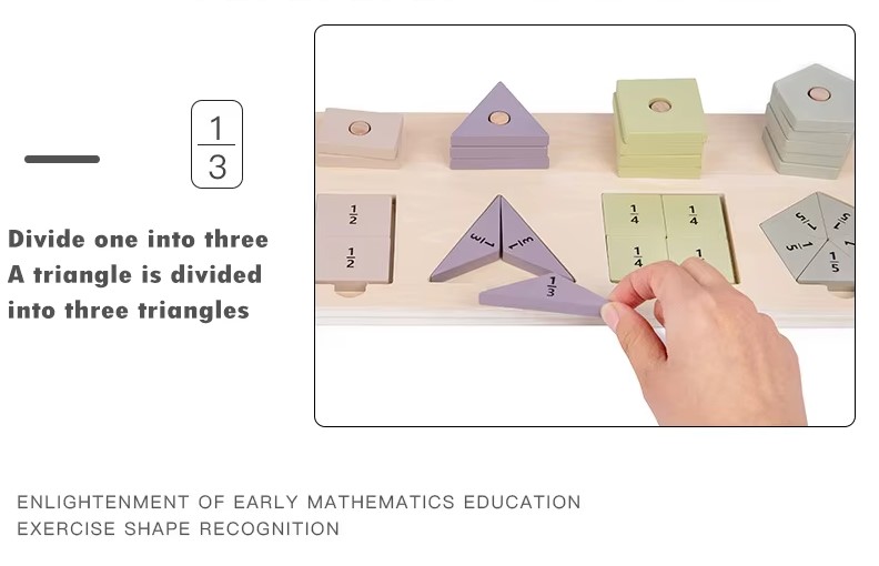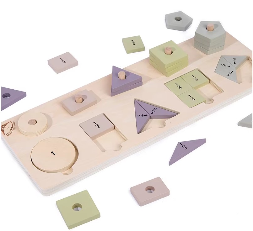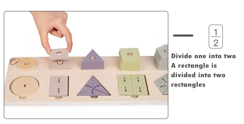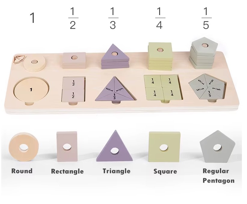 Un joc educativ inspirat din pedagogia Montessori, conceput pentru a le oferi copiilor o înțelegere intuitivă și practică a formelor geometrice și a fracțiilor simple. Ideal pentru copiii de la 3 ani în sus, acest material didactic îi ajută să își dezvolte gândirea logică, coordonarea mână-ochi și noțiunile de matematică timpurie.