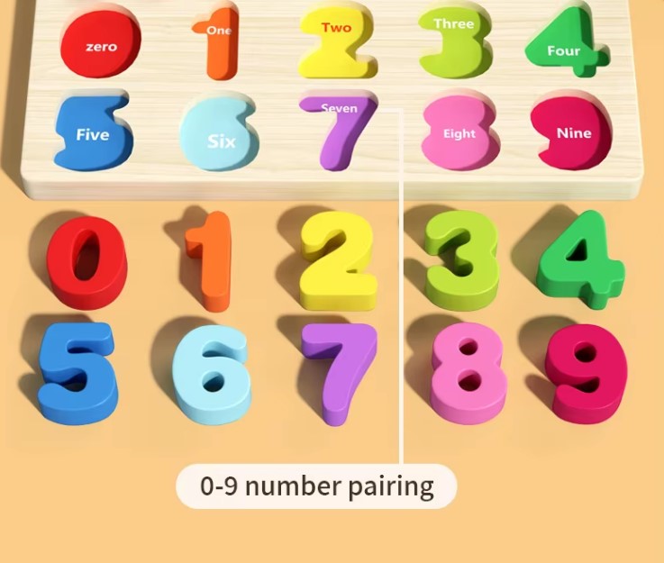 Puzzle incastru cu cifre 0–9 – ajută copiii să învețe numerele și să facă primele exerciții de matematică.