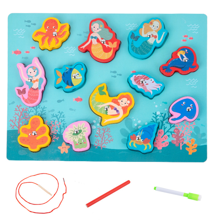 Puzzle magnetic, joc educativ de pescuit din lemn – Animale Marine