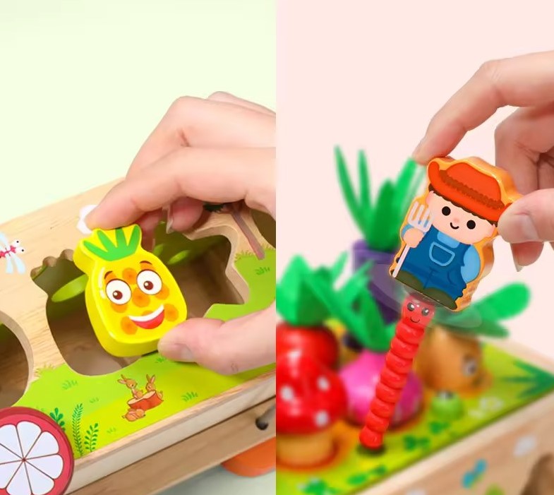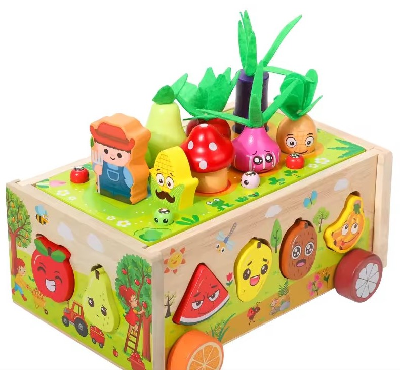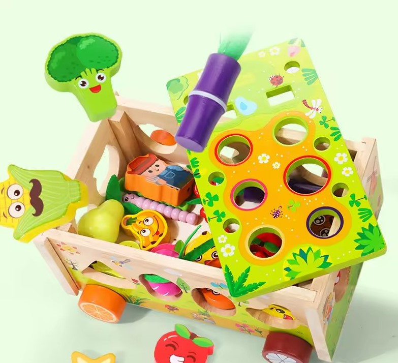 ✔ Sortator de forme – cei mici pot introduce diferite fructe și legume în orificiile potrivite, dezvoltând coordonarea mână-ochi și recunoașterea formelor.