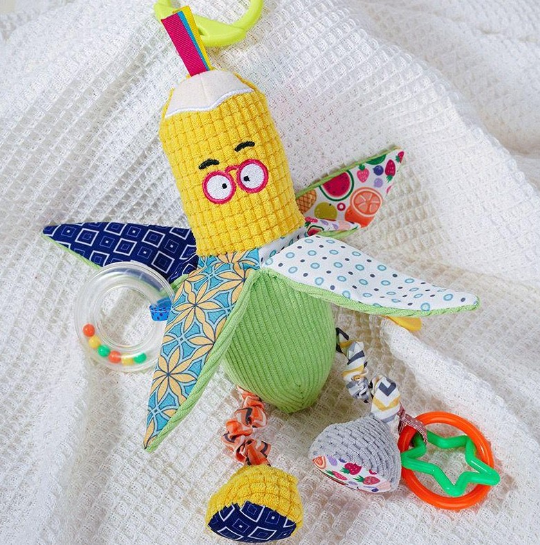 O jucărie adorabilă și interactivă, ideală pentru bebeluși de la 0 luni, perfectă pentru stimularea senzorială și motrică fină. Această jucărie moale și colorată are un design vesel, în formă de porumb, și este echipată cu diverse elemente care vor captiva atenția micuțului și îi vor dezvolta abilitățile cognitive și motorii.