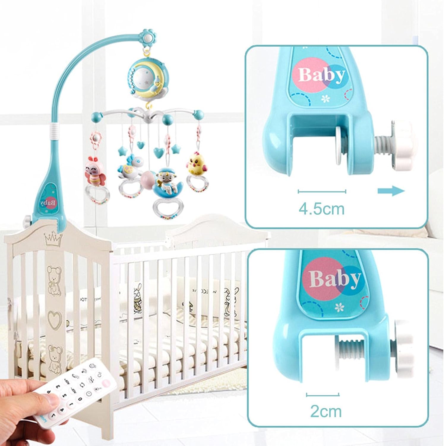 - Funcții multiple: Caruselul include melodii de leagăn, sunete din natură și proiecții de lumină care creează un efect liniștitor, ideal pentru a adormi bebelușul. De asemenea, figurinele detașabile pot fi folosite separat ca jucării zornăitoare.