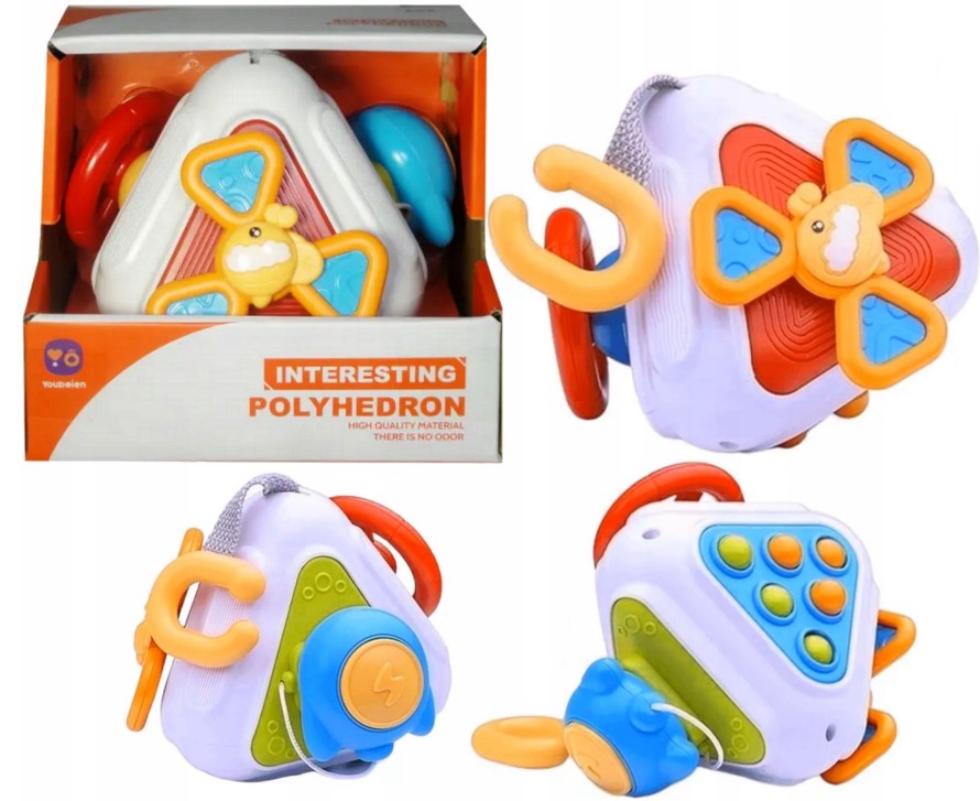 Aceasta jucarie senzoriala cu 10 in 1 activitati este perfecta pentru exersarea abilitatilor motorii fine, auditive, vizuale si tactie ale bebelusilor de 18 luni.