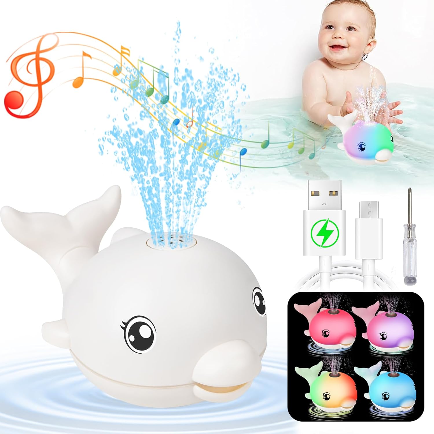 Jucarie de baie, Balena care lumineaza si stropeste, 6 luni+, Alb