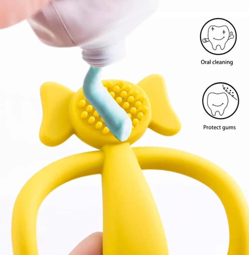 Alege un produs 2 în 1 – jucărie de dentiție și periuță de antrenament pentru dințișori – creat pentru a face această etapă mai ușoară și mai plăcută atât pentru bebeluș, cât și pentru părinți.