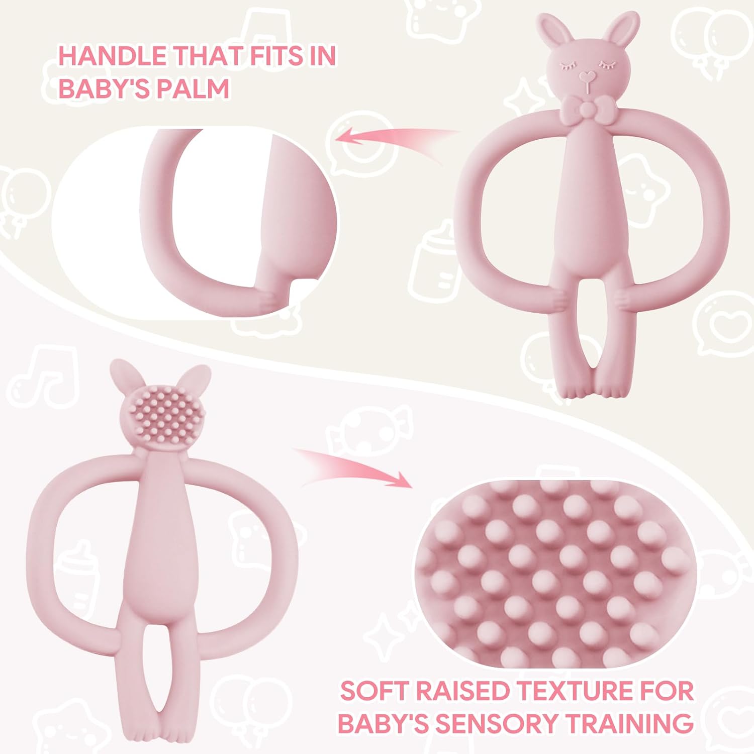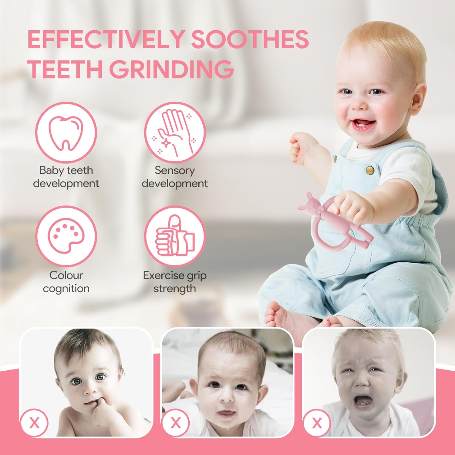 Creată special pentru fetițele aflate în perioada de erupție dentară, această jucărie de dentiție în formă de iepuraș roz este perfectă pentru a calma disconfortul gingival și pentru a stimula dezvoltarea senzorială. Designul adorabil și funcționalitatea 2 în 1 – dentiție și curățare orală – o transformă într-un accesoriu indispensabil pentru bebelușii de peste 6 luni.