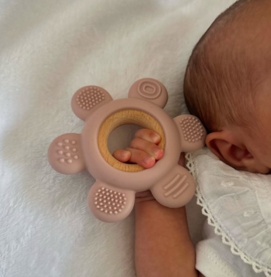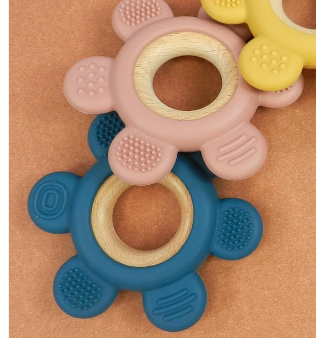 Această jucărie de dentiție este alegerea ideală pentru calmarea gingiilor sensibile ale bebelușilor, fiind concepută special pentru etapa erupției dentare. Realizată din silicon alimentar de calitate superioară și lemn natural de fag, oferă o combinație perfectă între texturi moi și ferme, care stimulează dezvoltarea senzorială a copilului.