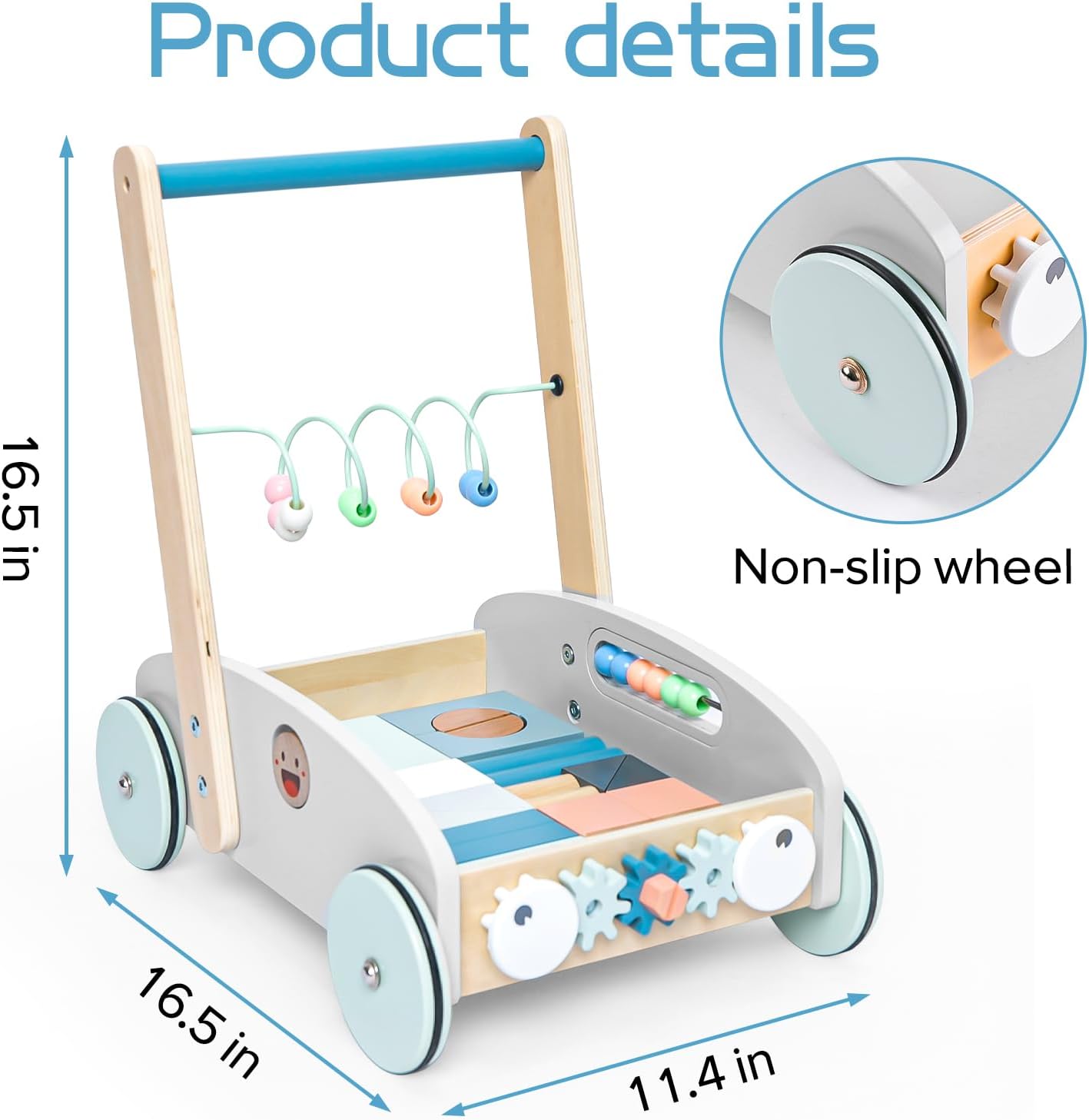 Această jucărie 2-în-1 din lemn este un premergător ideal pentru micii exploratori care fac primii pași, dar și o jucărie educativă versatilă, care susține dezvoltarea motorie și cognitivă. Prevăzută cu un mâner ergonomic, roți cu inel de cauciuc anti-alunecare și o bază largă pentru stabilitate, jucăria oferă siguranță și sprijin în timpul mersului.