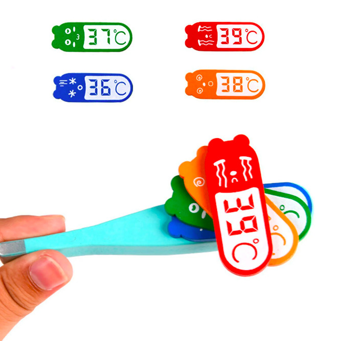 - termometru cu mai multe placute interschimbabile (cu magnet) ce indica temperatura.