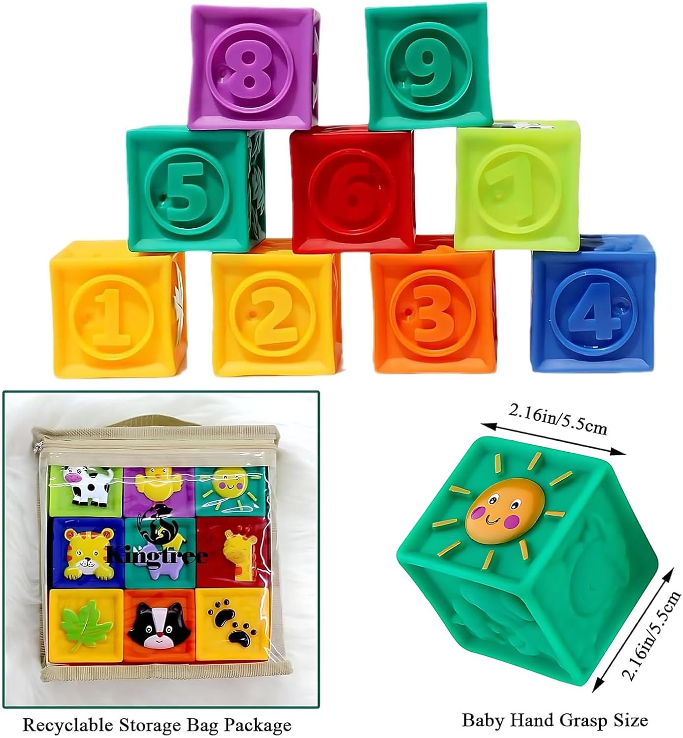 Jucarie educativa bebe, set 9 cuburi moi, 6 luni+