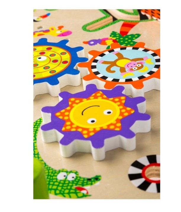 - Roți zimțate rotative – Încurajează gândirea logică și descoperirea relațiilor de cauzalitate.