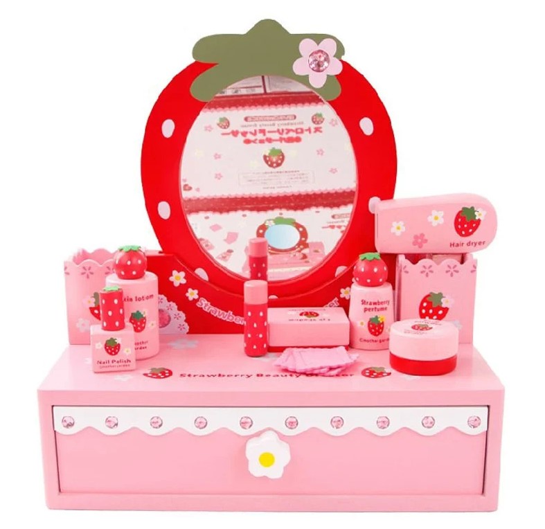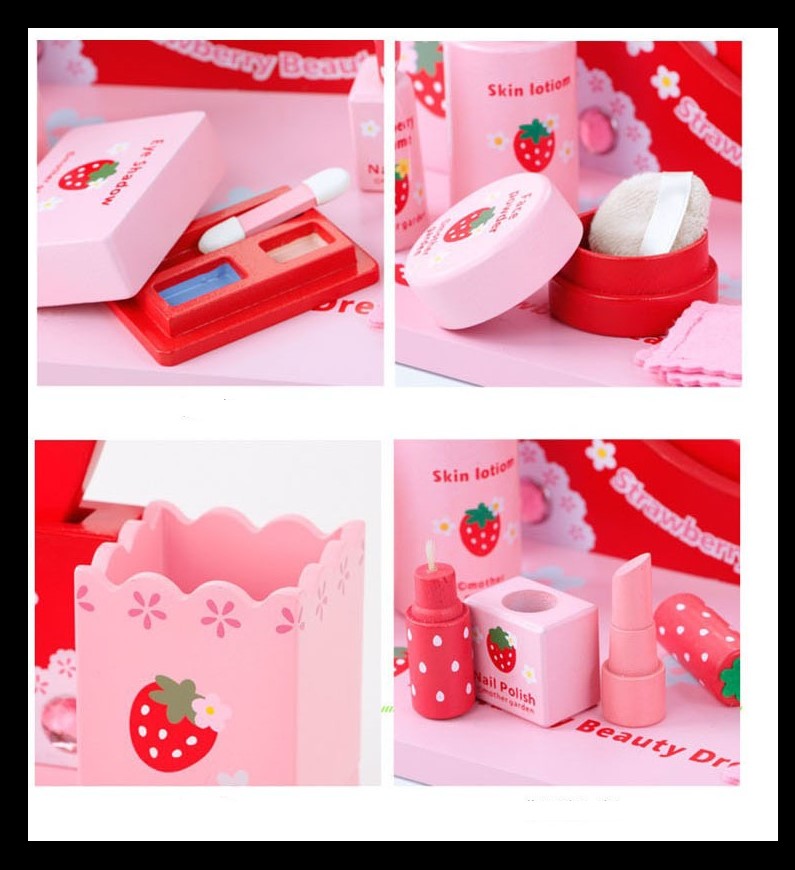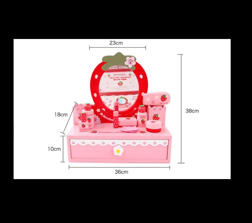 Masuță de machiaj din lemn – Jucărie educativă cu tematică Căpșunică, 3 ani+