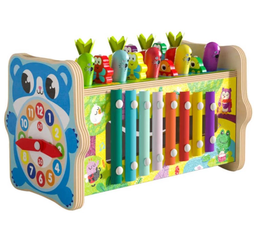 - Xilofon cu 8 note – dezvoltă ritmul și coordonarea.