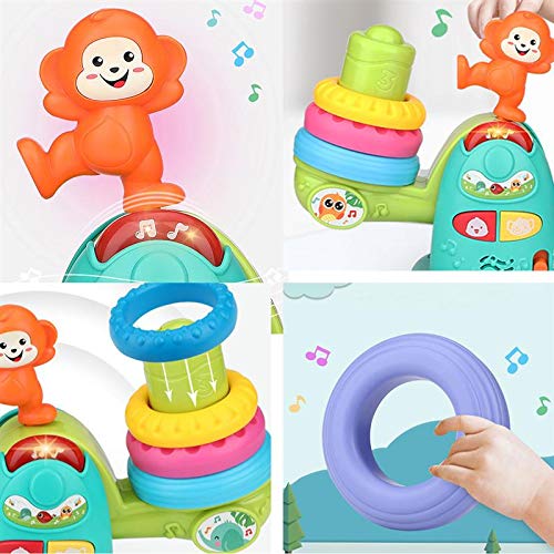 Structura sa tip balanță este prevăzută cu un personaj amuzant (maimuțică) și inele colorate care pot fi stivuite de copil pe ambele părți, învățând astfel noțiuni de echilibru, greutate și coordonare. Baza muzicală oferă sunete, cântece și efecte luminoase, captând atenția bebelușilor și încurajând jocul activ.