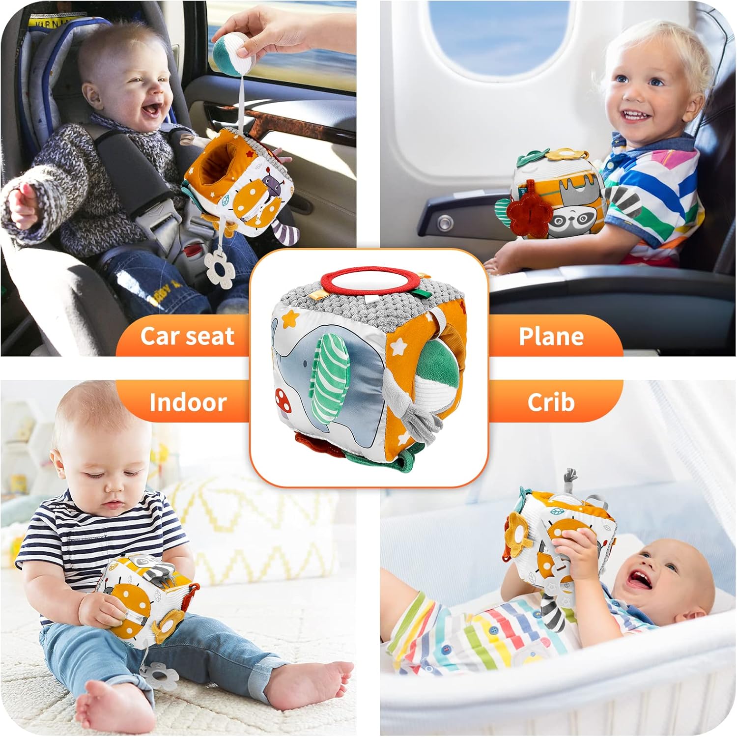 Cub textil cu activități – Jucărie senzorială și educativă pentru bebeluși, 6 luni+