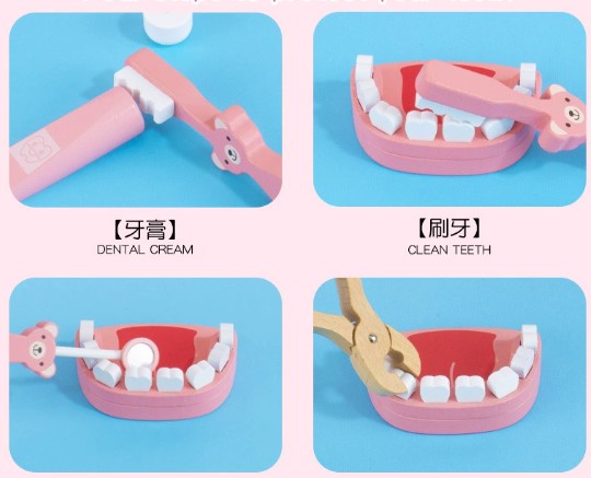 Jucărie educativă – Trusă de medic dentist din lemn, 3 ani+