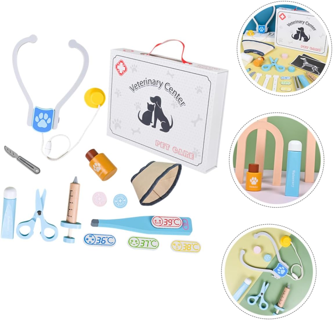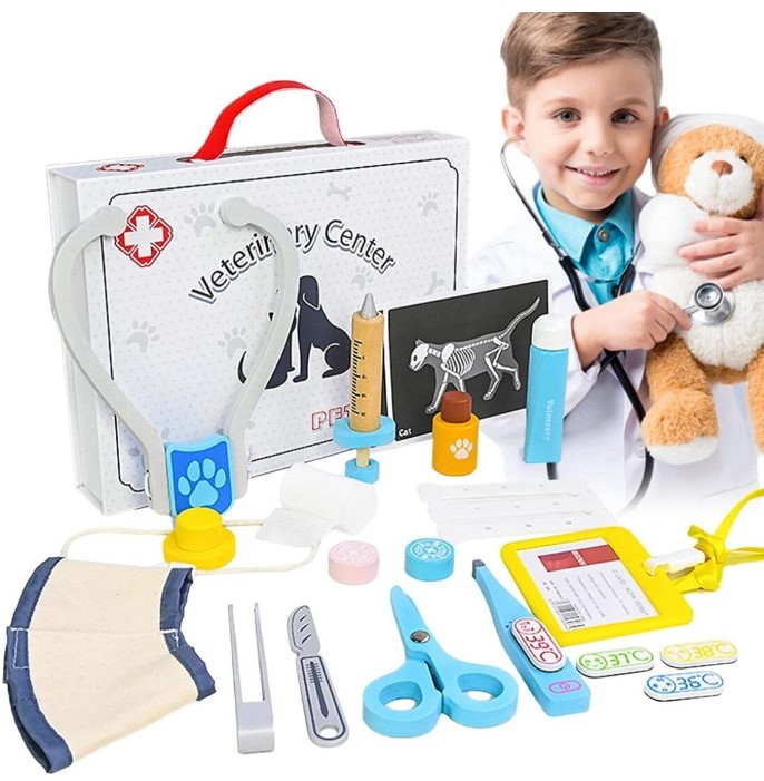 Jucarie educativa, Trusa medic veterinar din lemn, 22 piese, 3 ani