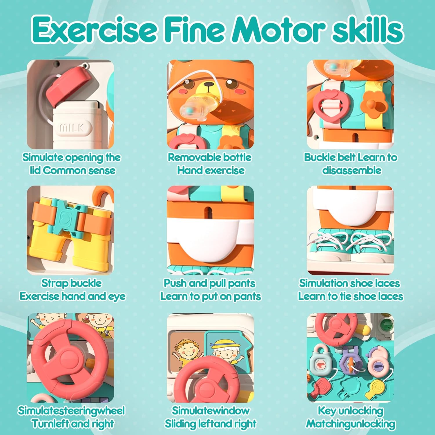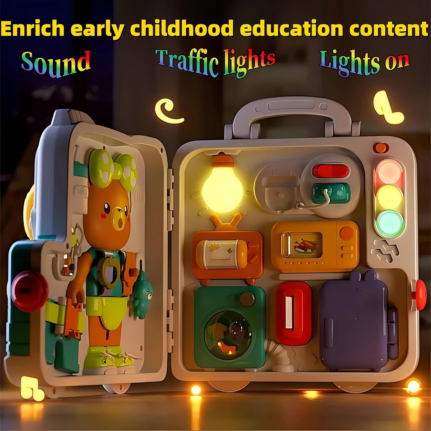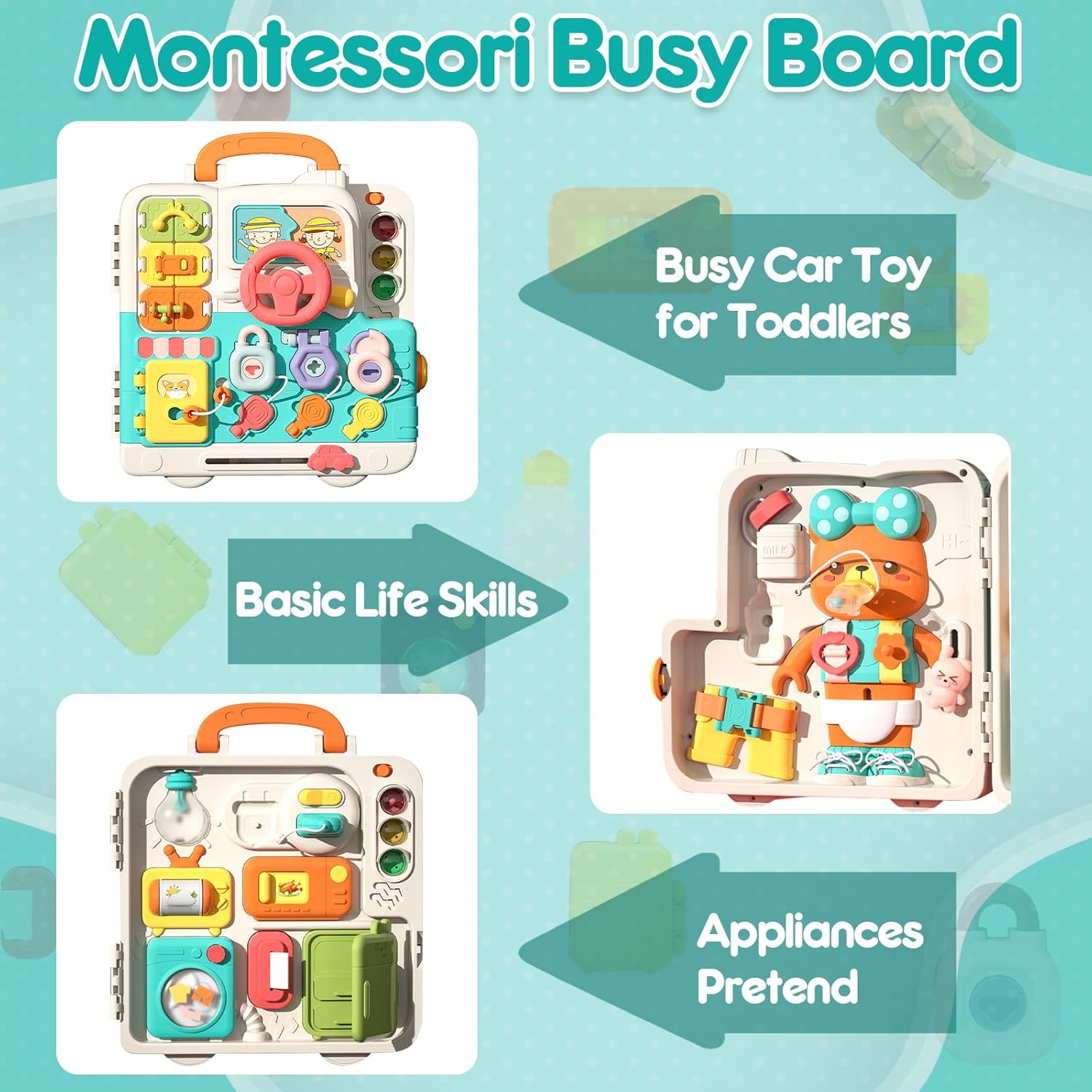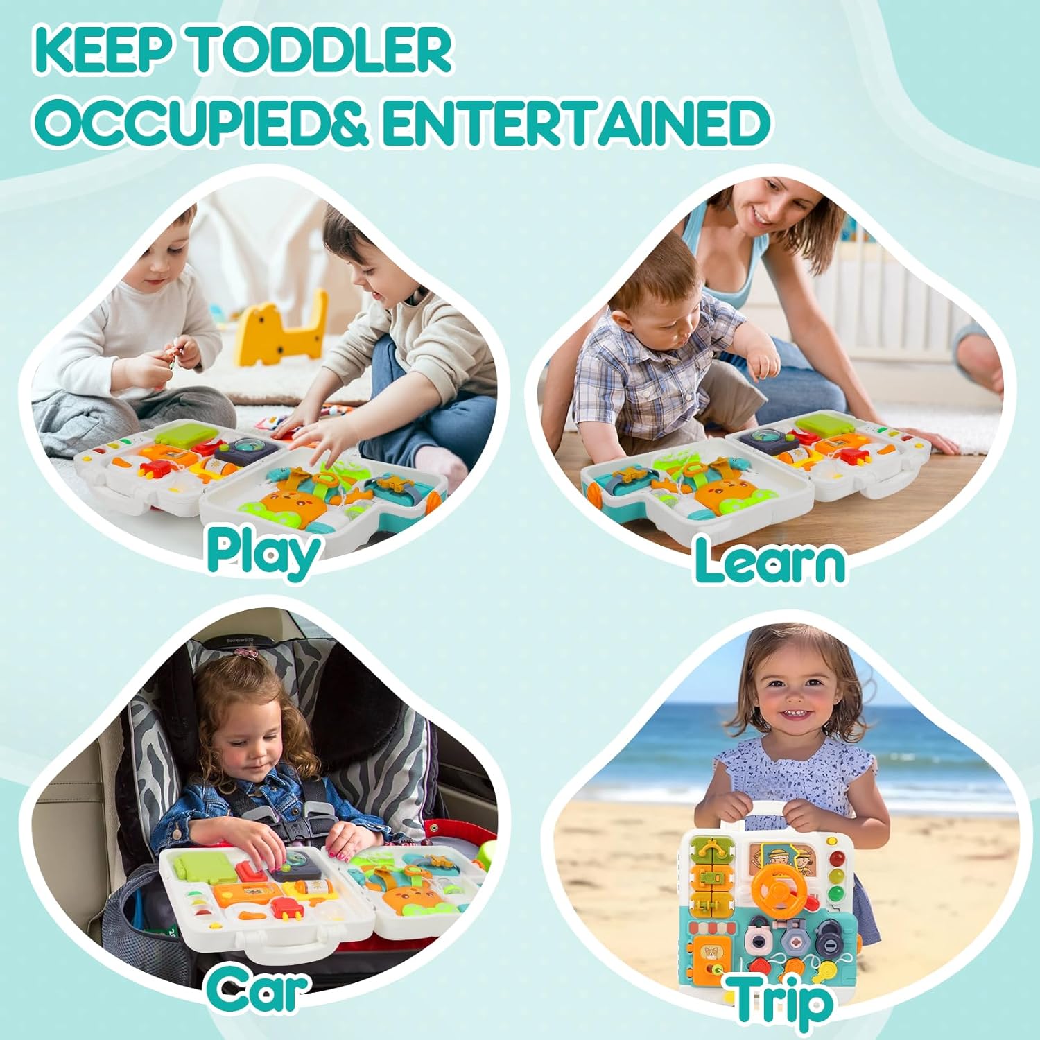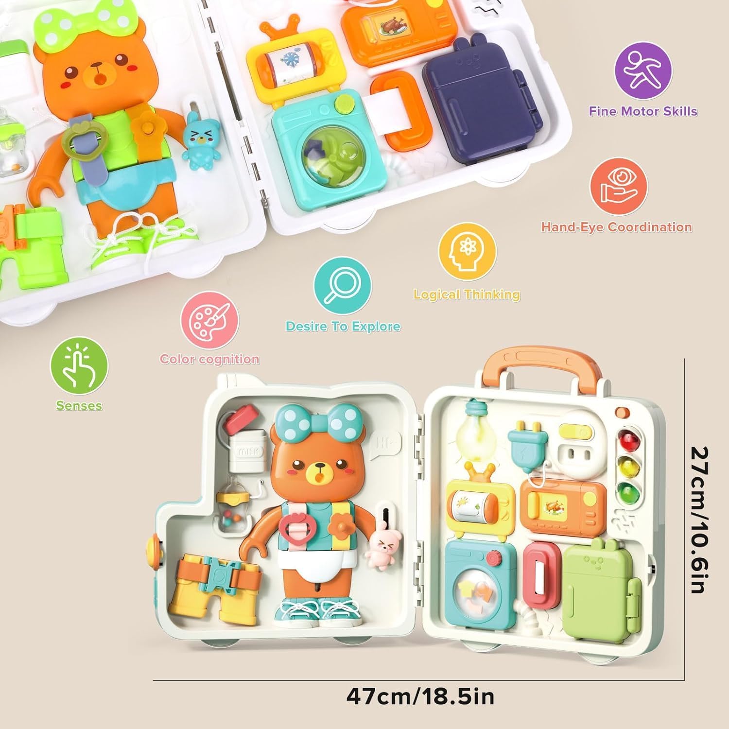 Această jucărie educativă multifuncțională 21 în 1 este un centru de activități complet, conceput special pentru copiii de peste 24 de luni. Sub formă de valiză portabilă, jucăria oferă multiple jocuri interactive care stimulează motricitatea fină, coordonarea mână-ochi, logica și creativitatea.