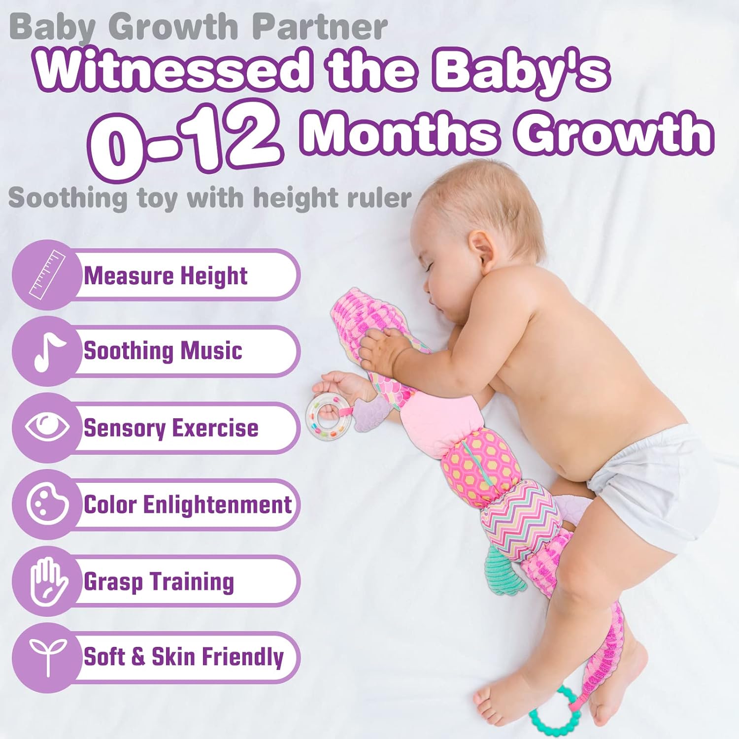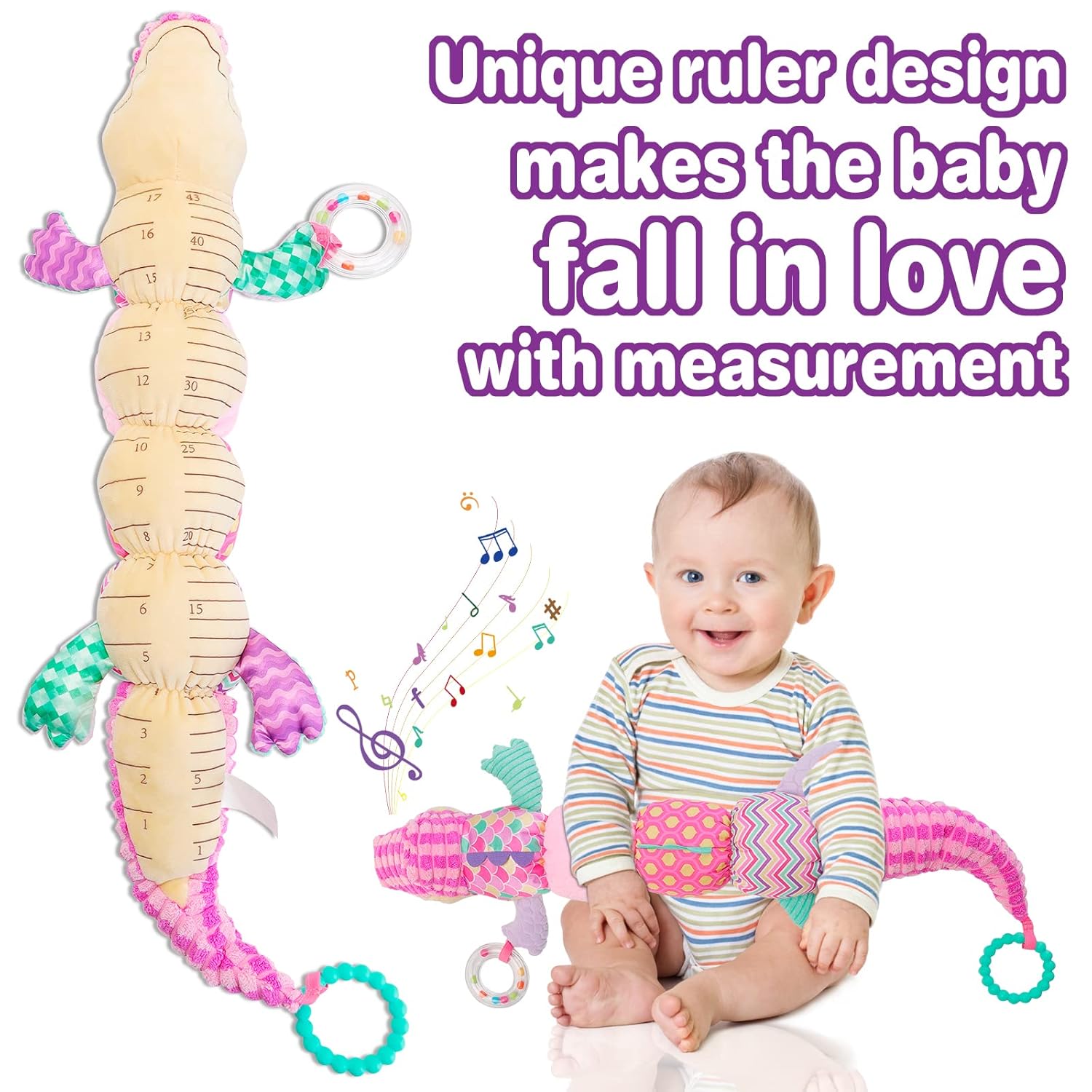 📏 Pentru măsurarea înălțimii: Părinții pot urmări creșterea bebelușului folosind scala gradată imprimată pe jucărie.