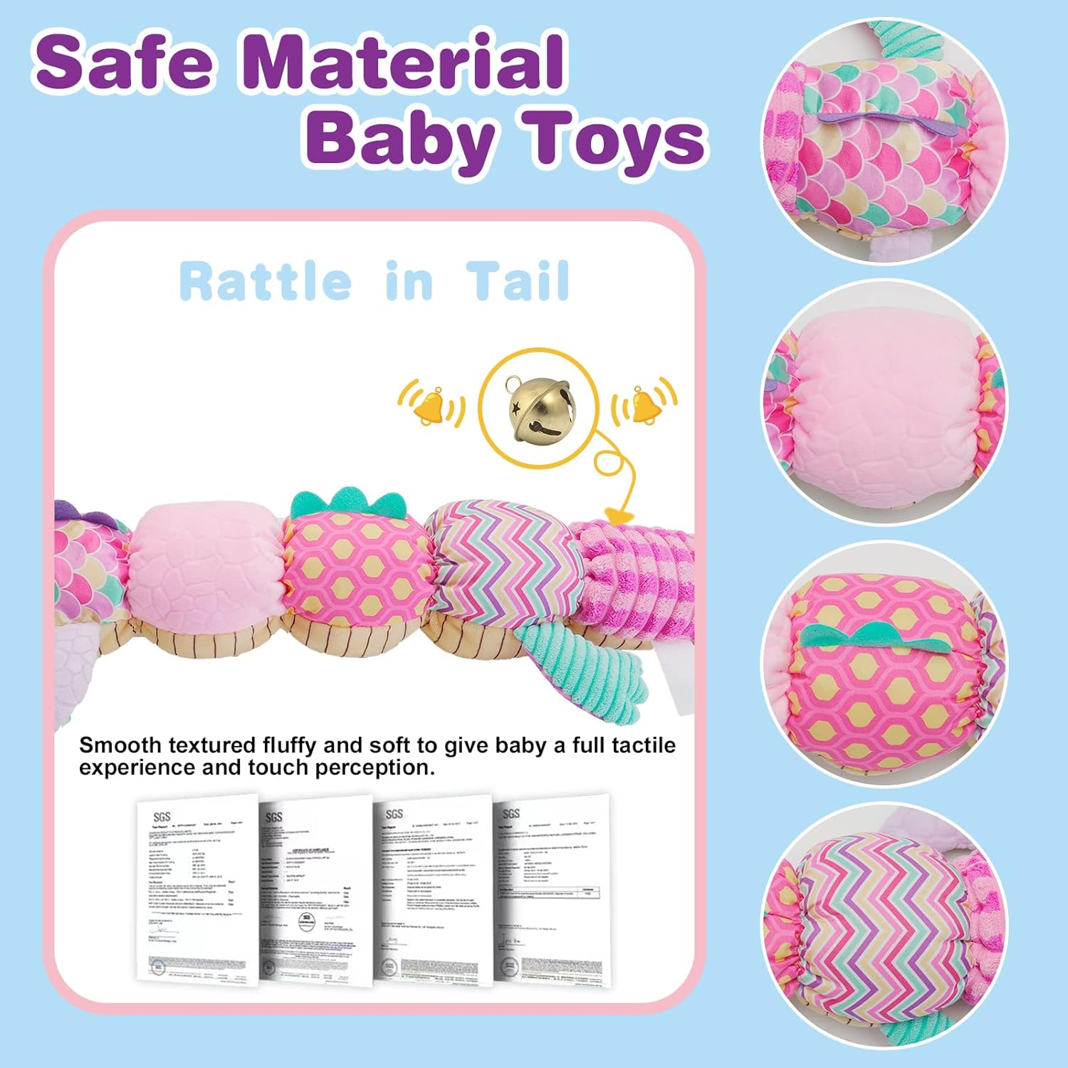 👶 Pentru nou-născuți: Oferă siguranță și confort datorită materialului moale. Bebelușii pot explora diversele texturi și sunete.