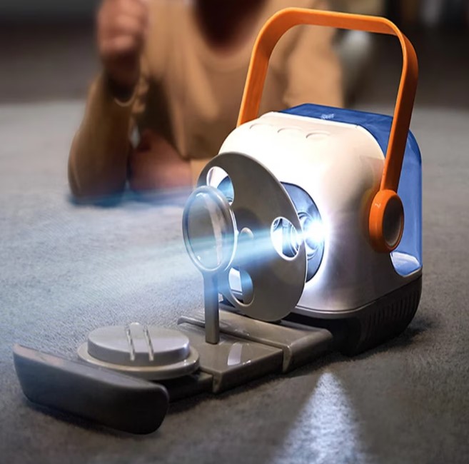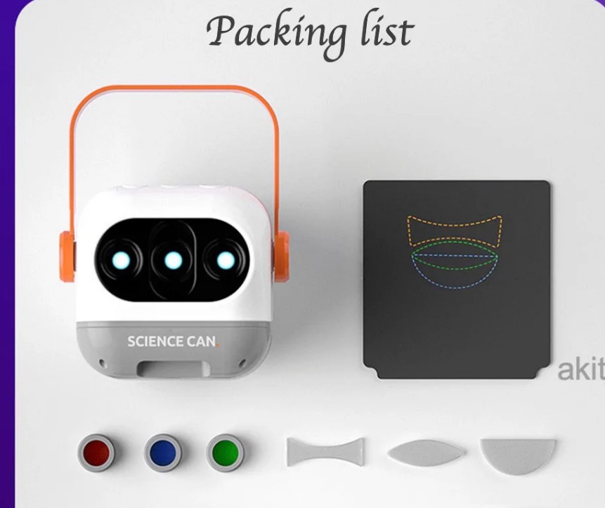 Setul include un proiector cu trei lentile LED, filtre colorate, oglinzi, lentile suplimentare și plăci experimentale ce permit realizarea unor proiecții spectaculoase și exerciții practice. Jucăria dezvoltă logica, curiozitatea științifică și spiritul de explorator al copiilor.