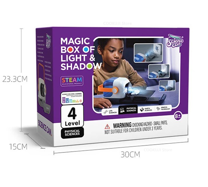 Jucăria Proiector optic cu experimente – Magic Box Science Can este un set educativ STEM conceput pentru copii pasionați de știință și descoperire. Cu ajutorul acestui proiector interactiv, cei mici pot înțelege concepte fundamentale legate de lumină, umbre, reflexie și refracție printr-o serie de experimente distractive și vizuale.