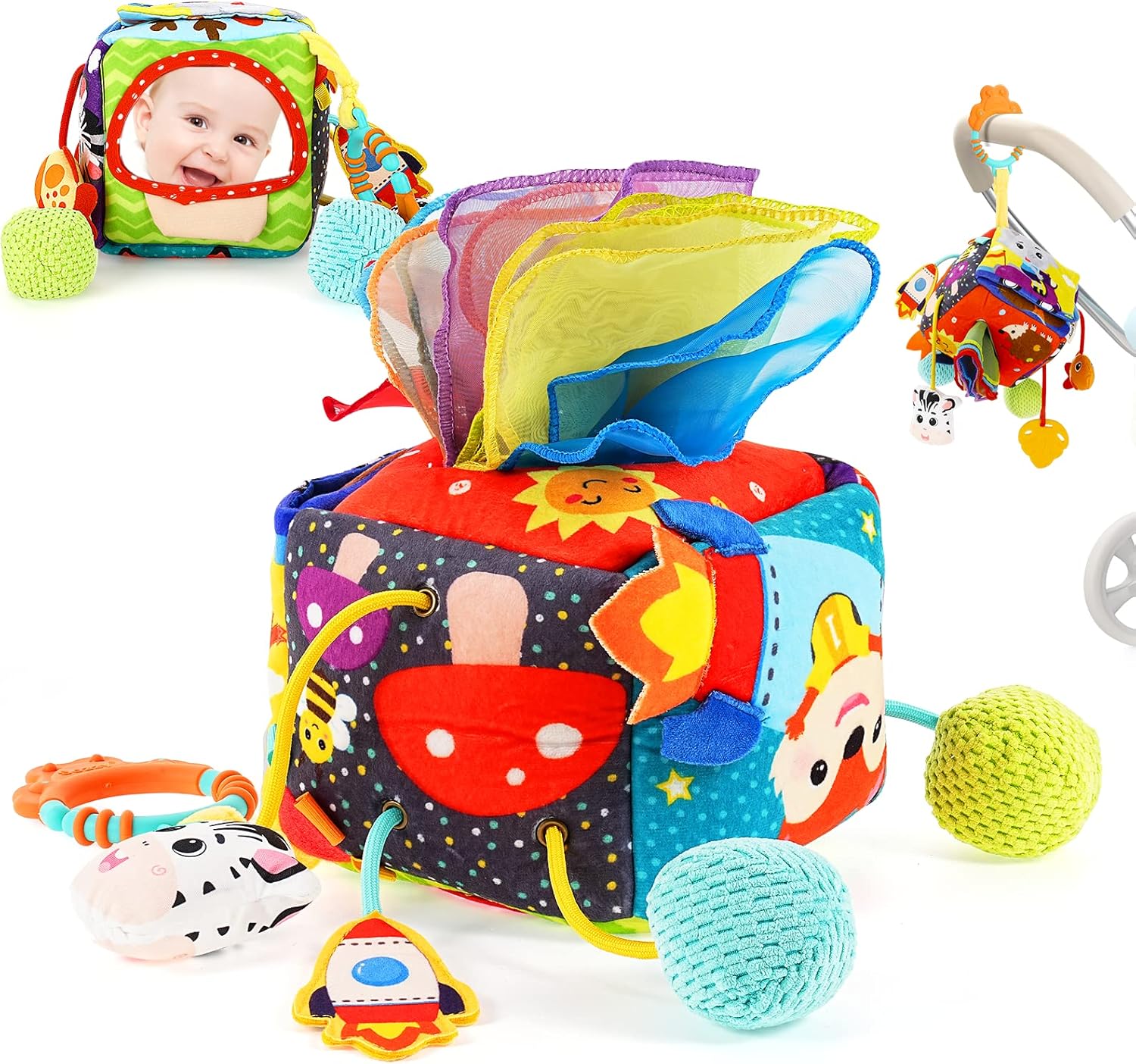 Acest cub senzorial pentru bebeluși este o jucărie interactivă și educativă, ideală pentru stimularea simțurilor și dezvoltarea abilităților cognitive și motorii ale bebelușilor încă de la primele luni de viață. Proiectat pentru a fi utilizat atât în pătuț, cât și în cărucior, acest cub senzorial oferă o gamă variată de activități care vor captiva și încânta micuțul tău.