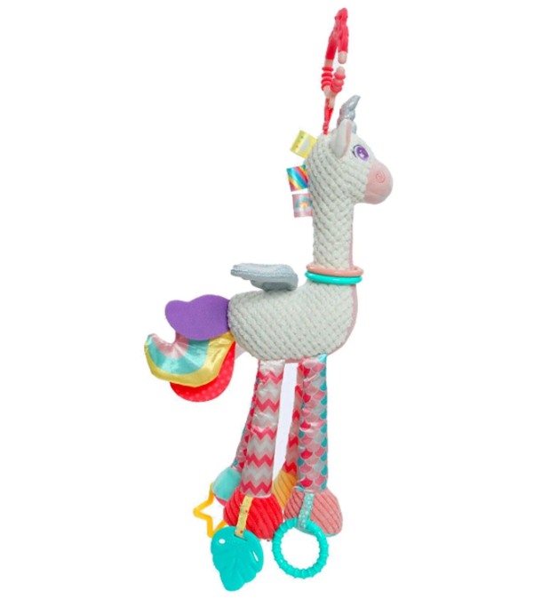 Această jucărie senzorială sub formă de unicorn roz este concepută special pentru a stimula dezvoltarea senzorială a bebelușilor de la naștere. Este realizată din materiale sigure și moi, ideale pentru a calma durerile cauzate de apariția dinților.