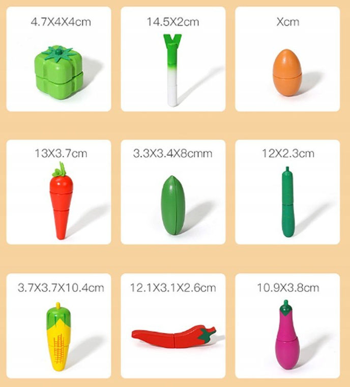- Învățarea prin joacă: Ajută la identificarea legumelor, învățarea culorilor și înțelegerea conceptului de feliere.