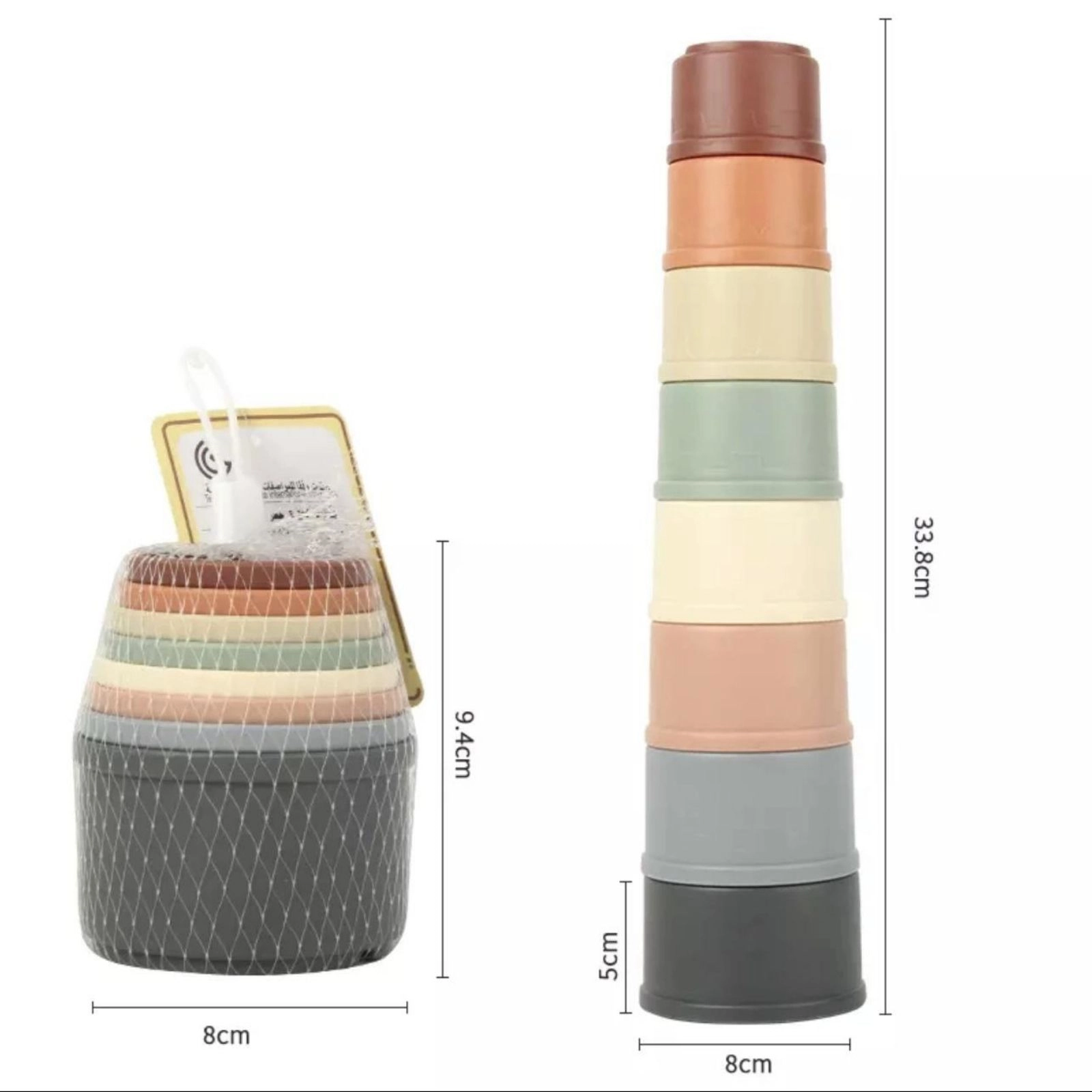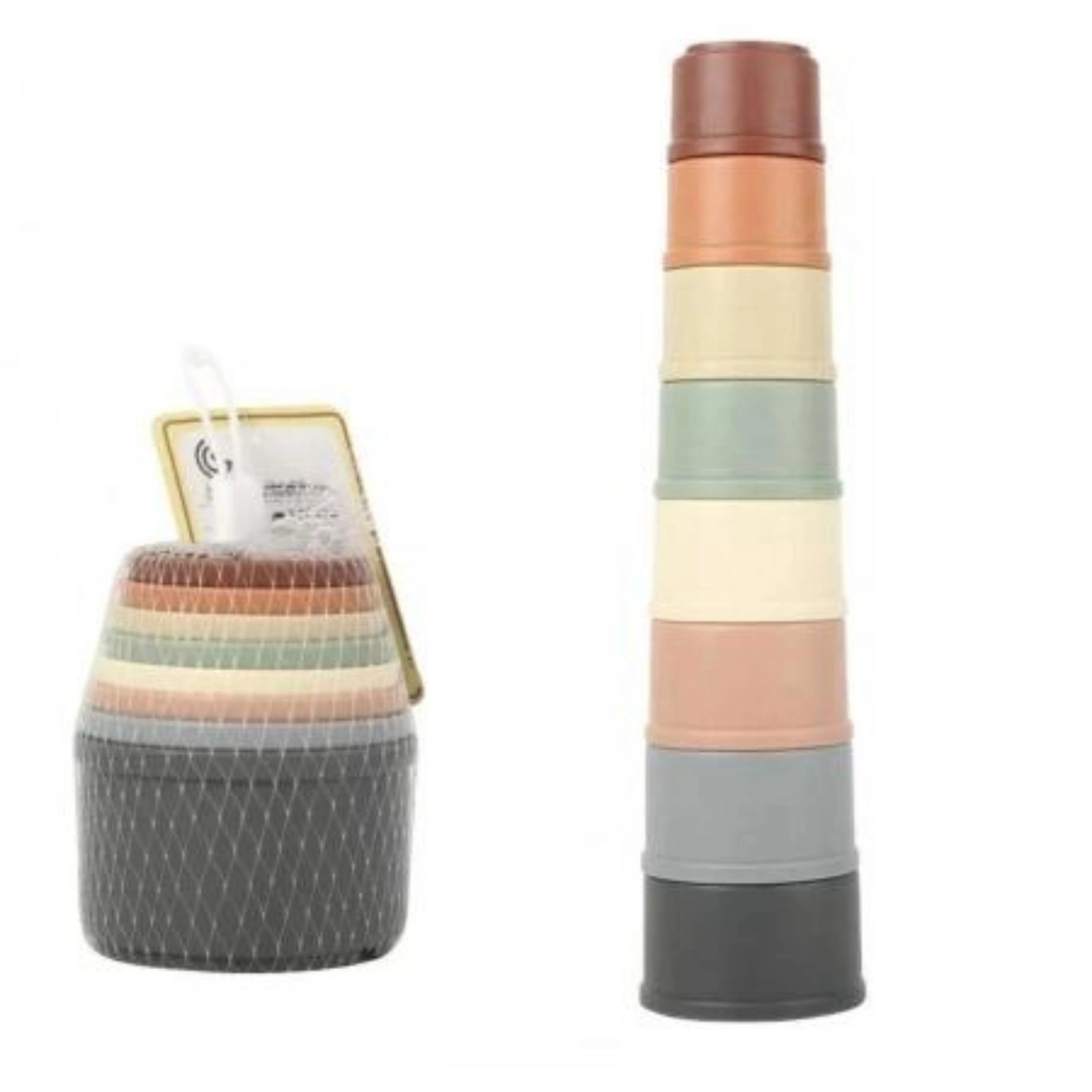Pentru o joaca completa si distractiva, la inceput copilul va trebui sa stivuiasca paharele in ordinea descrescatoare a marimii pentru a obtine un turn.