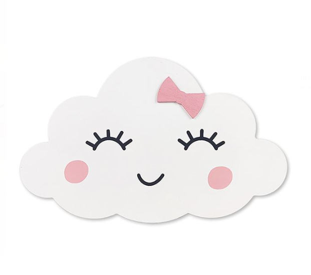 Lampa decorativă din lemn pentru copii, model norisor cu bandă led cu lumină alba și buton On/Off.