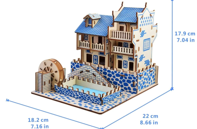 Această machetă colectibilă redă o vilă asiatică tradițională, cu detalii autentice, gravate și tăiate cu laser pentru o precizie deosebită. Construcția se realizează prin îmbinarea pieselor din lemn, fără lipici sau unelte suplimentare, ceea ce o face sigură și prietenoasă pentru copii.