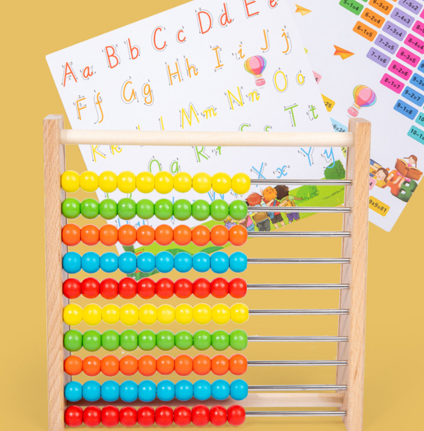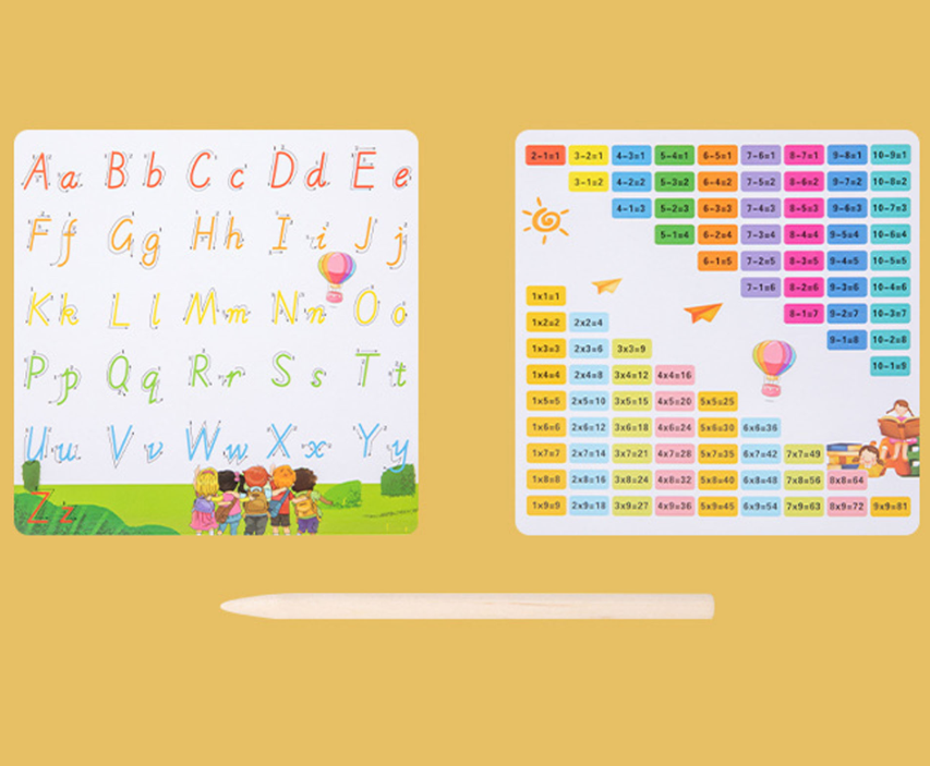 - Exerciții cu Tabelele: Folosind tabelele de pe spatele abacului, copilul poate exersa scrierea literelor mari și mici ale alfabetului, precum și efectuarea înmulțirilor simple. Acest lucru dezvoltă atât abilitățile de scriere, cât și cele matematice.