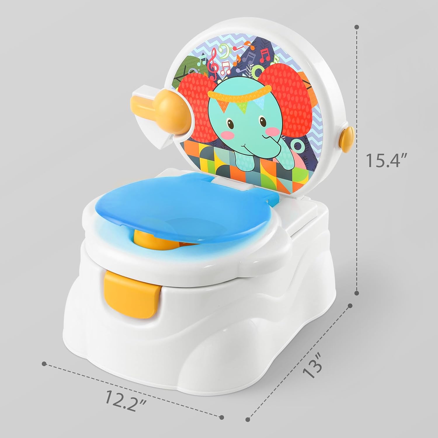 Transformă tranziția de la scutec la toaletă într-o experiență amuzantă și lipsită de stres! Olița muzicală interactivă 4 în 1 este concepută pentru a sprijini procesul de învățare a utilizării toaletei prin joacă și funcționalitate practică. Are un design colorat și prietenos cu un elefănțel simpatic și este potrivită pentru copiii cu vârsta între 2 și 5 ani.