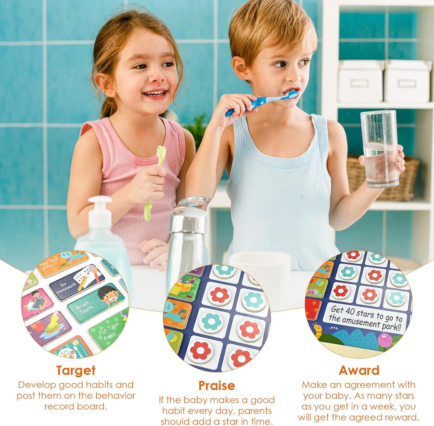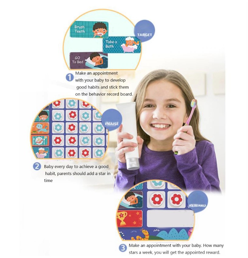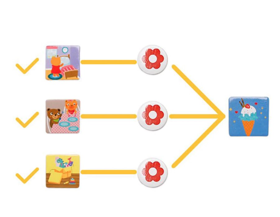 Părinții aleg împreună cu copilul sarcinile zilnice care vor fi afișate pe panou. De fiecare dată când copilul finalizează o activitate (ex: „spală pe dinți” sau „strânge jucăriile”), primește un magnet-recompensă care se așază pe tabel. La finalul săptămânii, numărul de magneți adunați poate fi asociat cu o recompensă (ex: timp de joacă, o ieșire în parc sau un desert preferat).