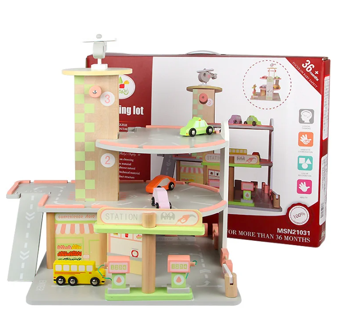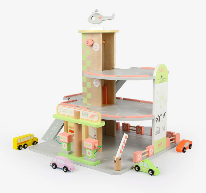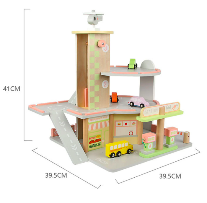 Descoperă bucuria jocului creativ cu această parcare supraetajată din lemn, ideală pentru micii pasionați de mașinuțe și aventuri aeriene! Acest set de joacă complex este perfect pentru copii de la 3 ani în sus și oferă multiple oportunități de explorare și distracție.