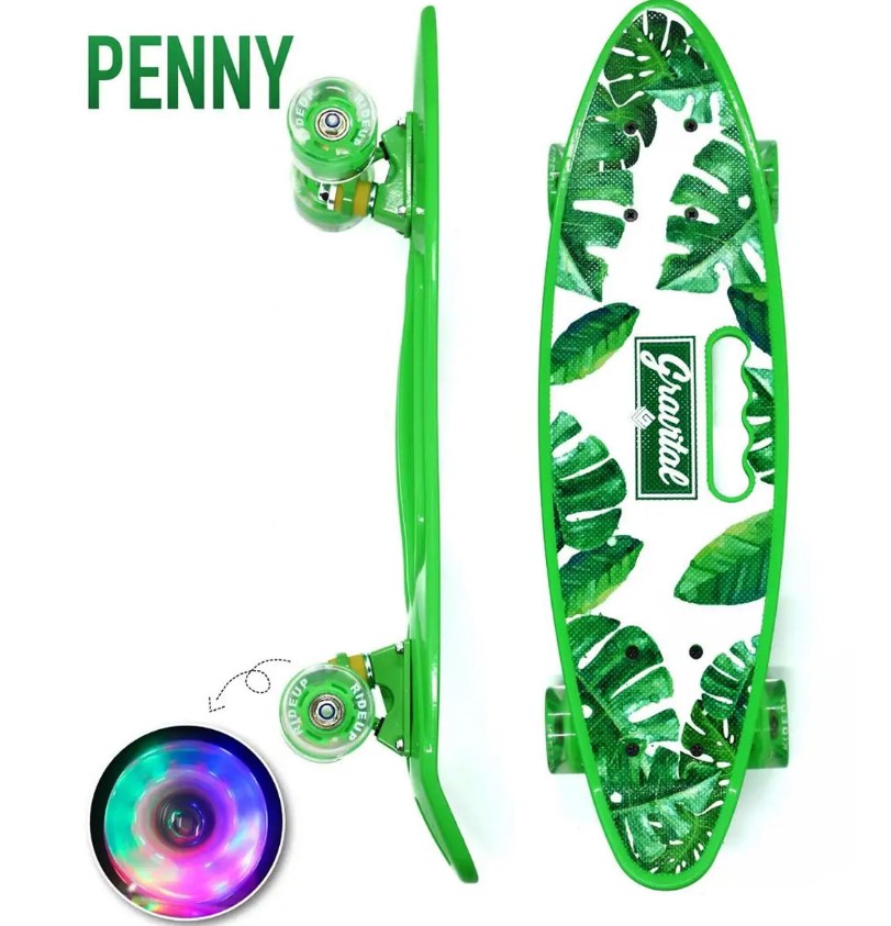 Transformă fiecare plimbare într-o aventură palpitantă cu Penny Board-ul pentru copii, de 61 cm, în nuanțe vibrante de verde tropical! Acest skateboard compact și ușor este ideal pentru începători, dar și pentru cei mai experimentați, fiind o alegere excelentă pentru distracția în aer liber.