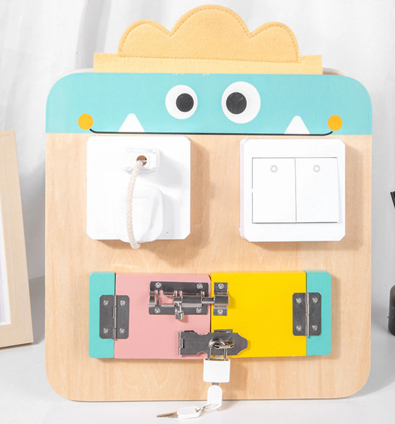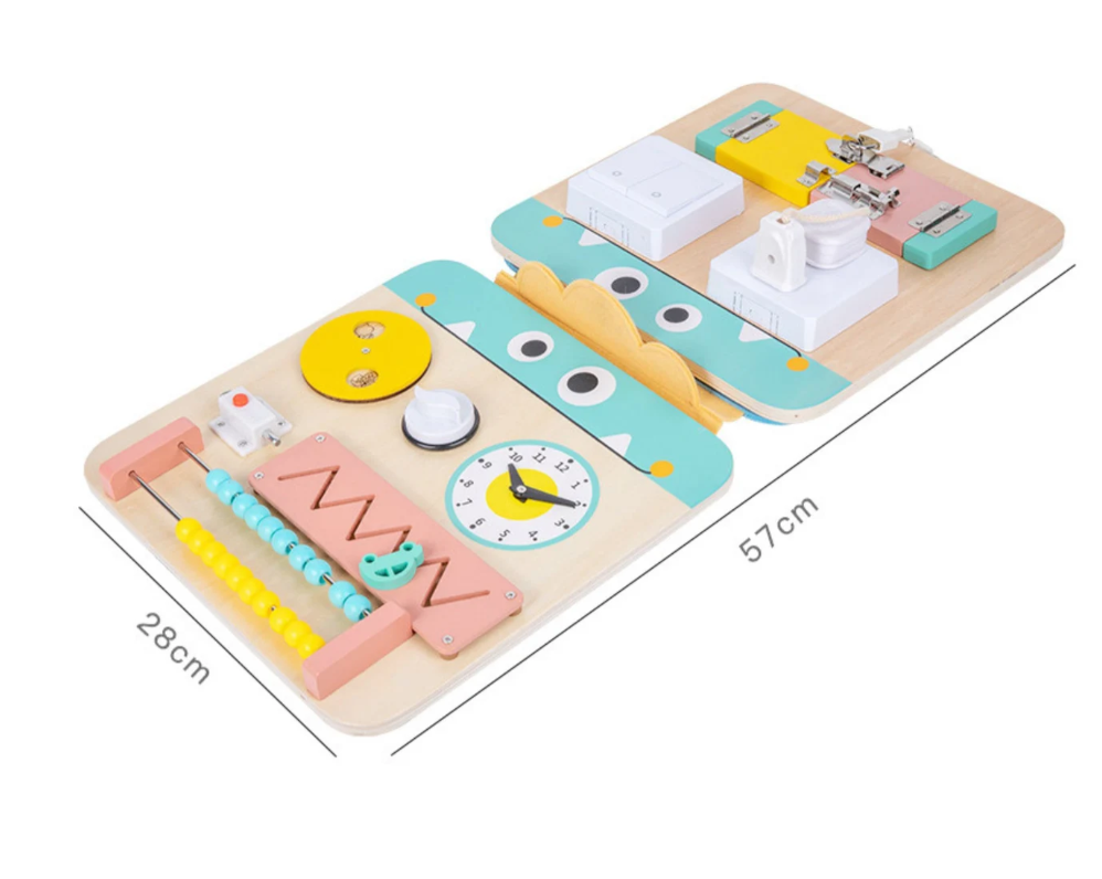- Design atractiv și educativ: Busy Board-ul are un design prietenos și colorat, cu un aspect drăguț de animal care captează atenția copiilor. Fiecare element de pe placă este ales pentru a fi atât estetic, cât și funcțional, încurajând copiii să exploreze și să învețe.