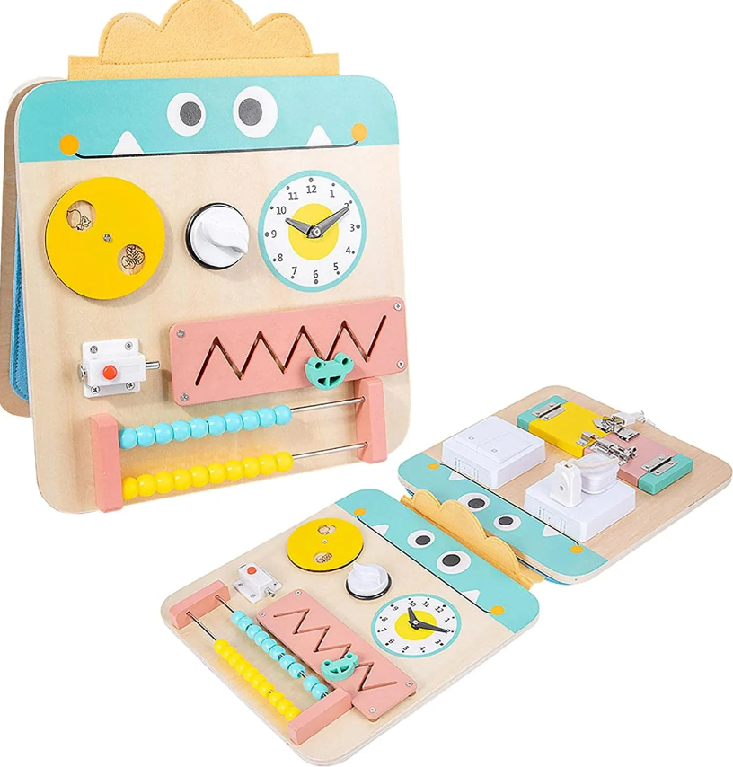 - Stimulare cognitivă: Busy Board-ul promovează gândirea logică și rezolvarea problemelor prin diversele sale activități. Copiii învață prin joc și descoperire, ceea ce face procesul de învățare mai eficient și plăcut.