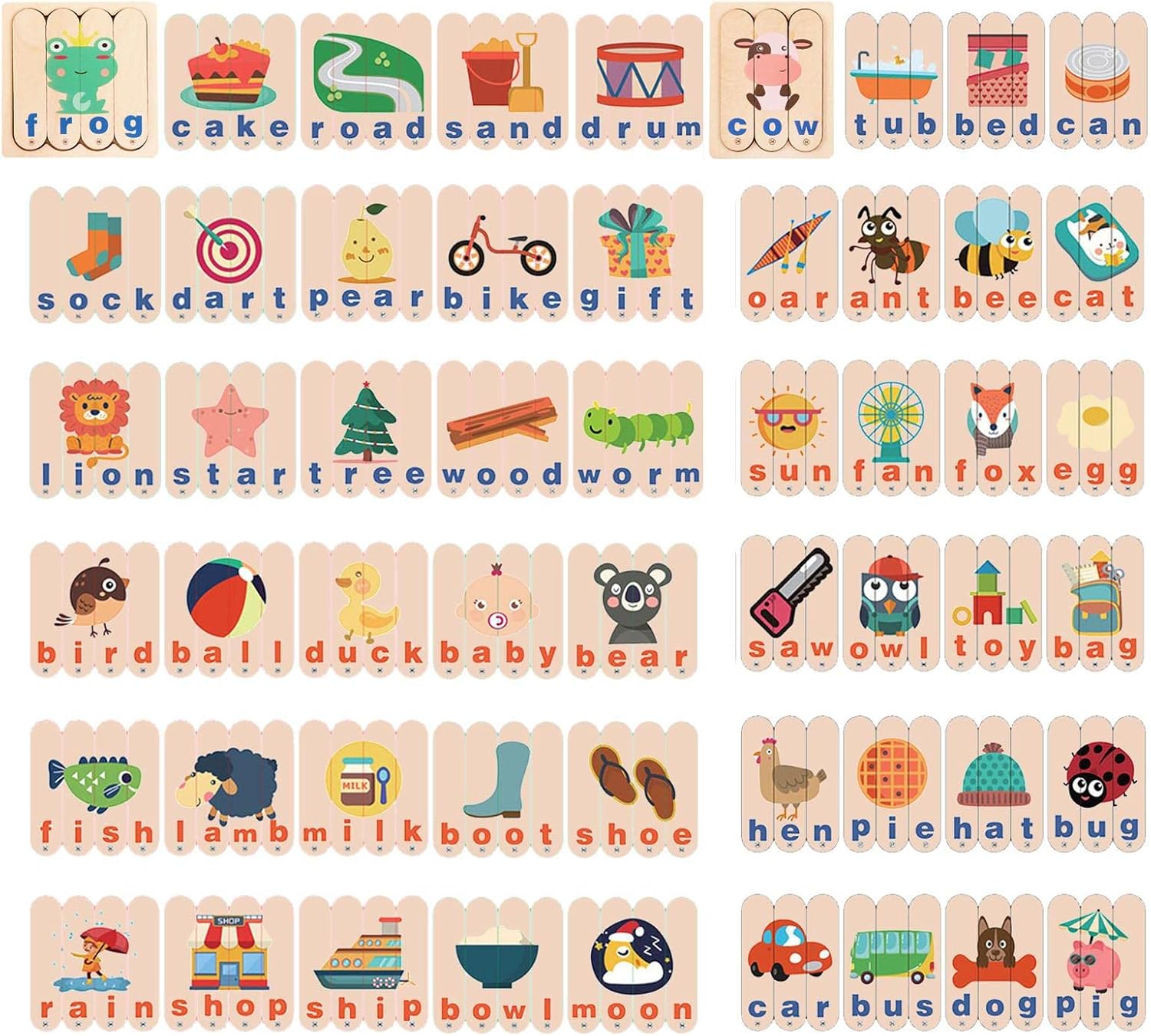 Acest puzzle educativ din lemn îi ajută pe copii să învețe alfabetul și să descopere primele cuvinte într-un mod distractiv și interactiv. Fiecare cuvânt este format din benzi de potrivire care trebuie aliniate corect pentru a completa imaginea și literele.
