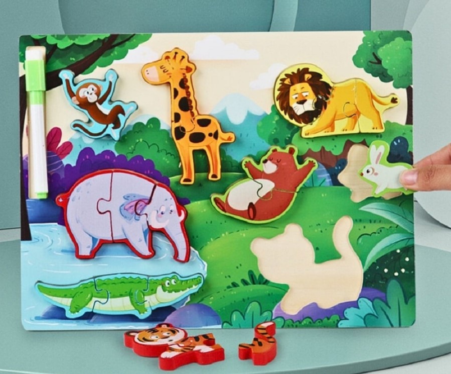 👉 Puzzle-ul educativ cu piese groase și tăbliță de desenat este o jucărie completă, care combină învățarea timpurie cu joaca liberă, fiind ideală atât acasă, cât și la grădiniță.