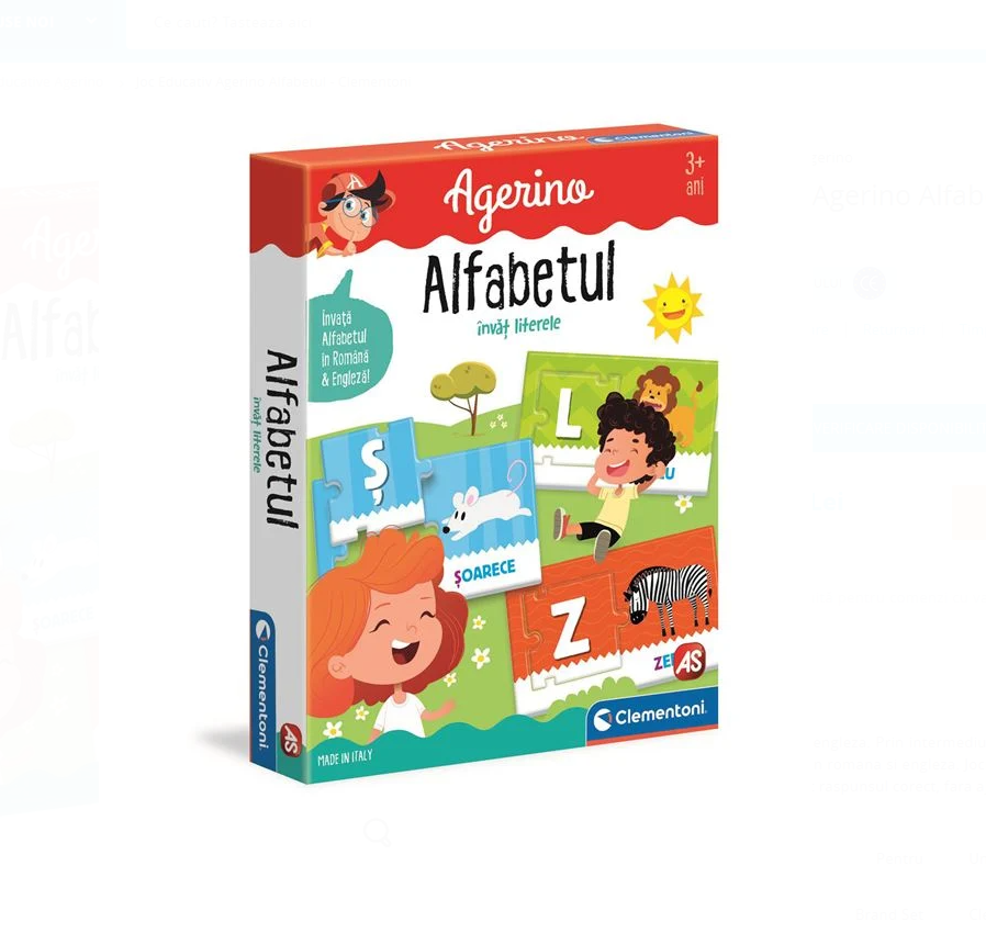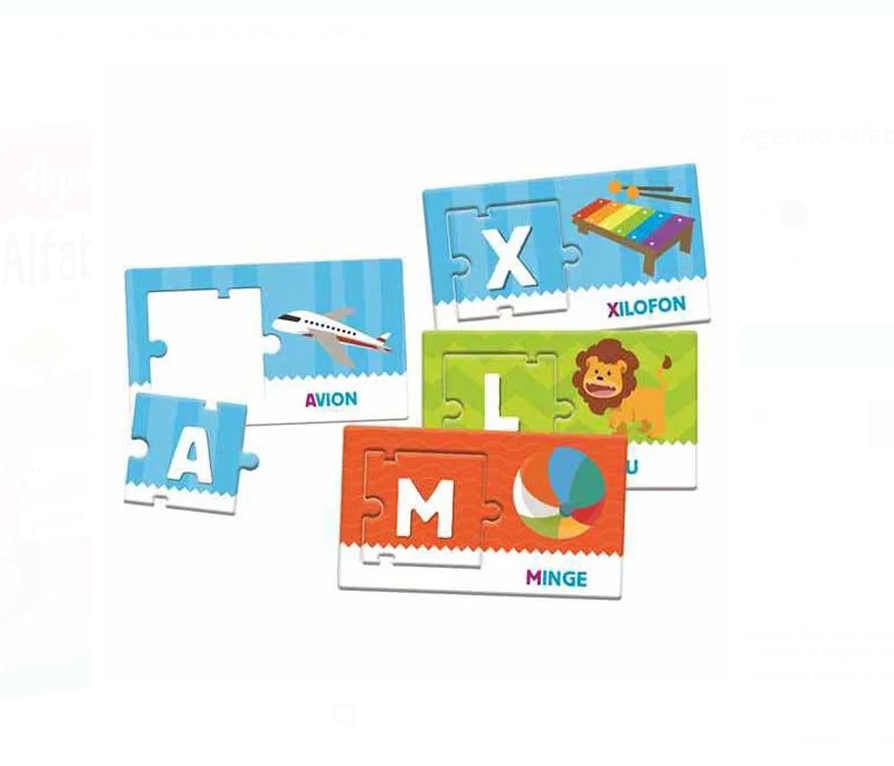 Transformă învățarea alfabetului într-o activitate distractivă și captivantă pentru cei mici cu acest puzzle educativ bilingv! Jocul „Alfabetul” este conceput special pentru copiii de peste 3 ani, ajutându-i să învețe literele, sunetele acestora și primele cuvinte, atât în limba română, cât și în engleză.