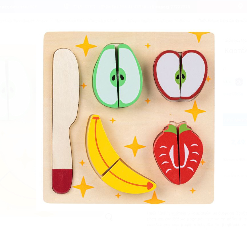- incurajeaza dezvoltarea unor obiceiuri alimentare sanatoase.Fructele se aseamana cu cele reale pentru a-i incuraja pe copii sa se amuze taindu-le in doua.