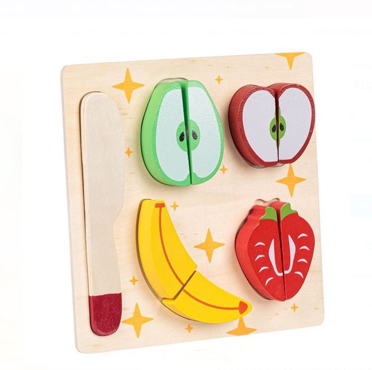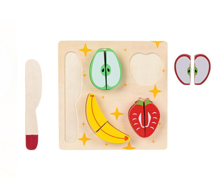 - Numar piese: 4 fructe a cate 2 piese, un cutit si placa suport din lemn.