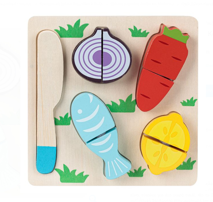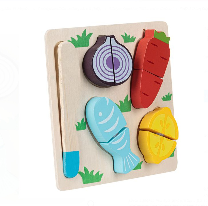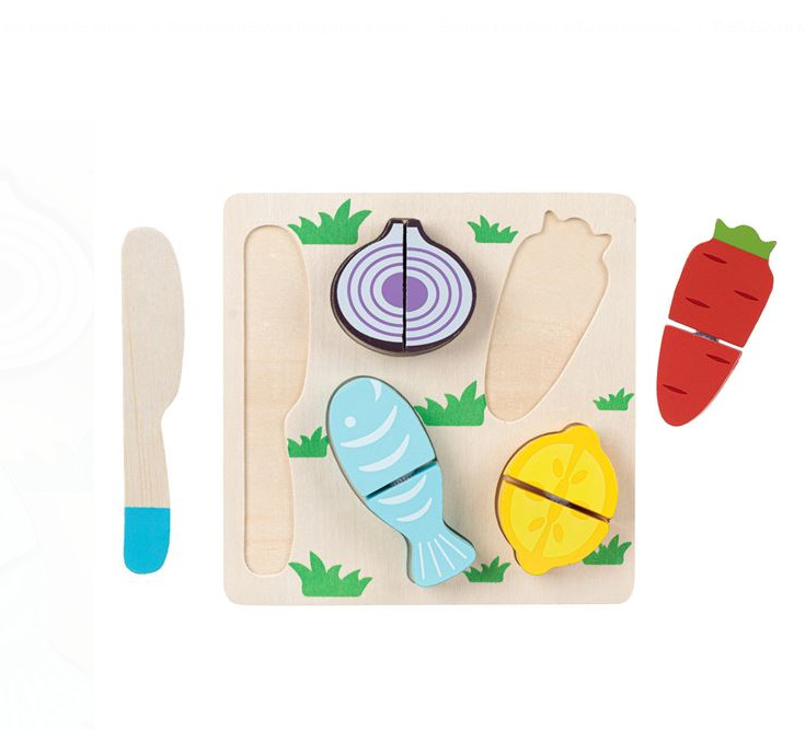 Puzzle din lemn cu alimente, cu arici, viu colorate.Acesoriu bucatarie copii.