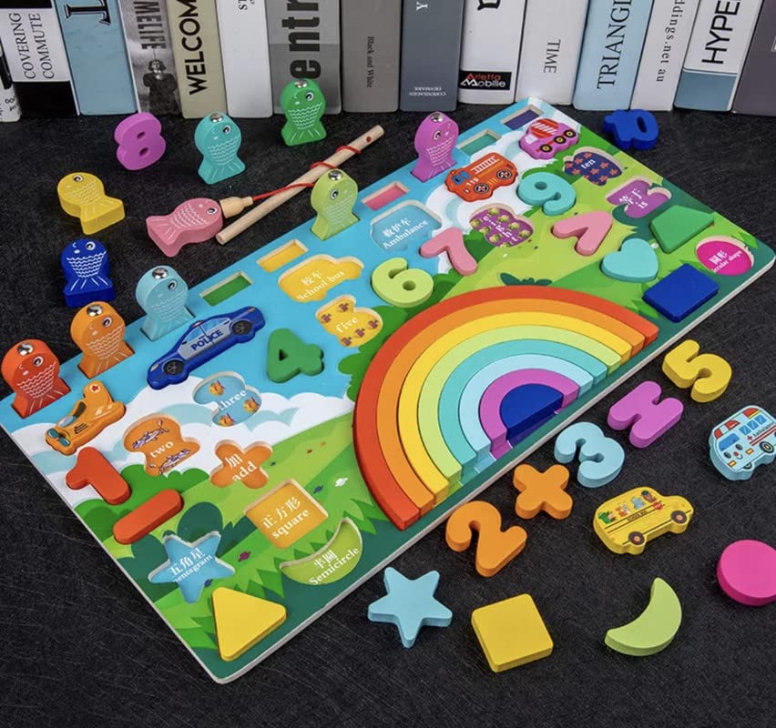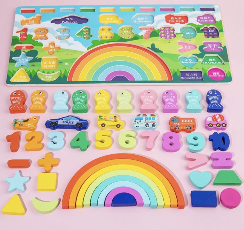 Puzzle, joc logaritmic montessori, 6 in 1 activitati, 3 ani