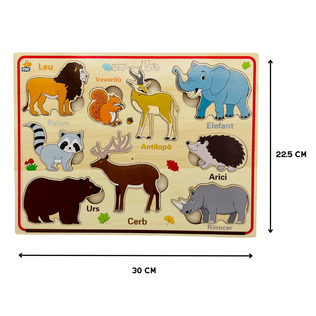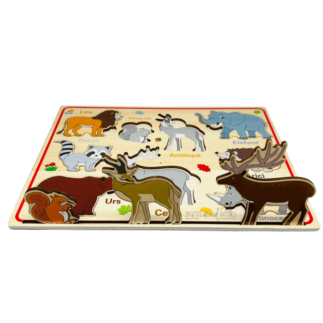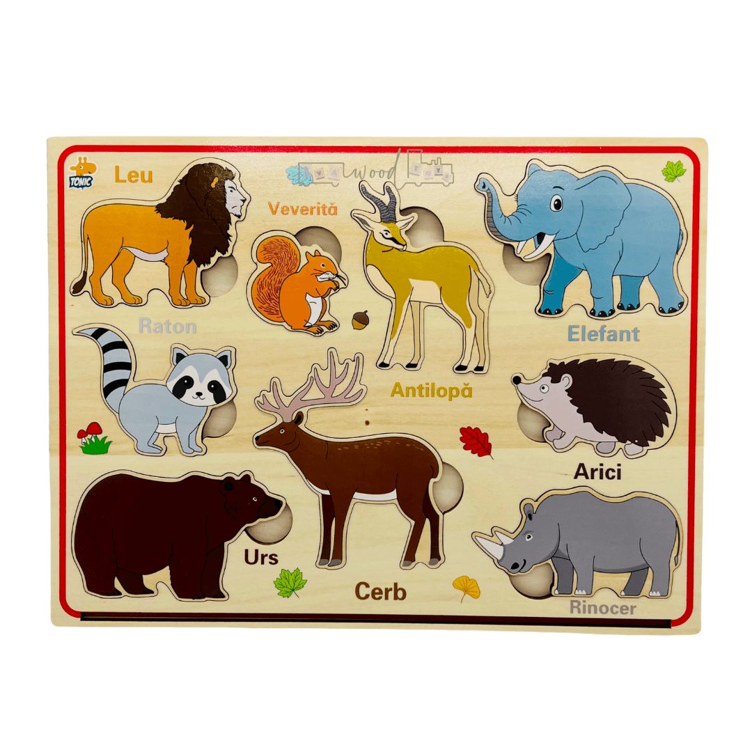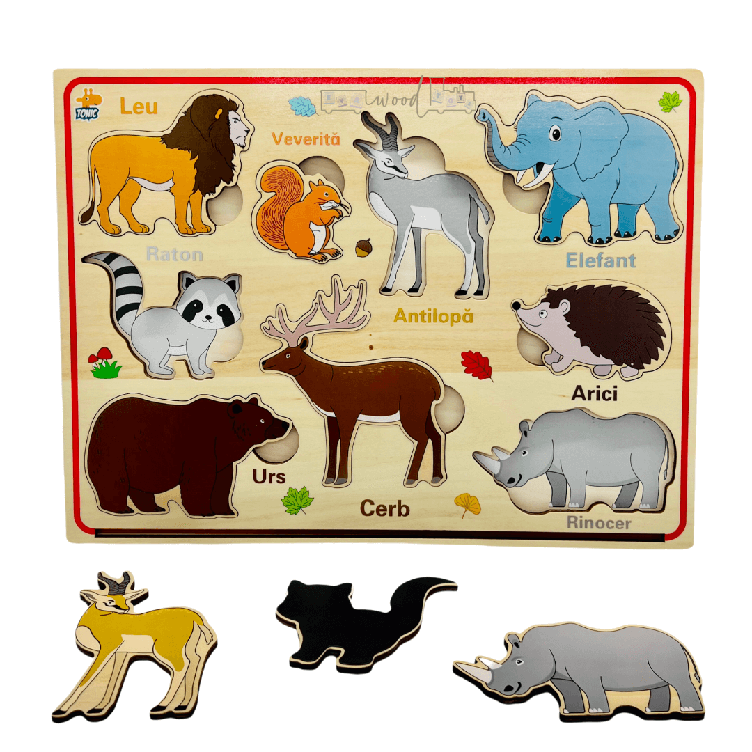 Puzzle magnetic din lemn in Limba Romana, Animale salbatice
