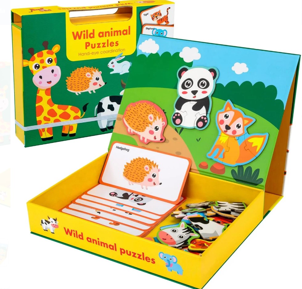 👉 Puzzle-ul magnetic tip carte cu animale este un cadou educativ și distractiv, perfect pentru micii exploratori pasionați de lumea animalelor.