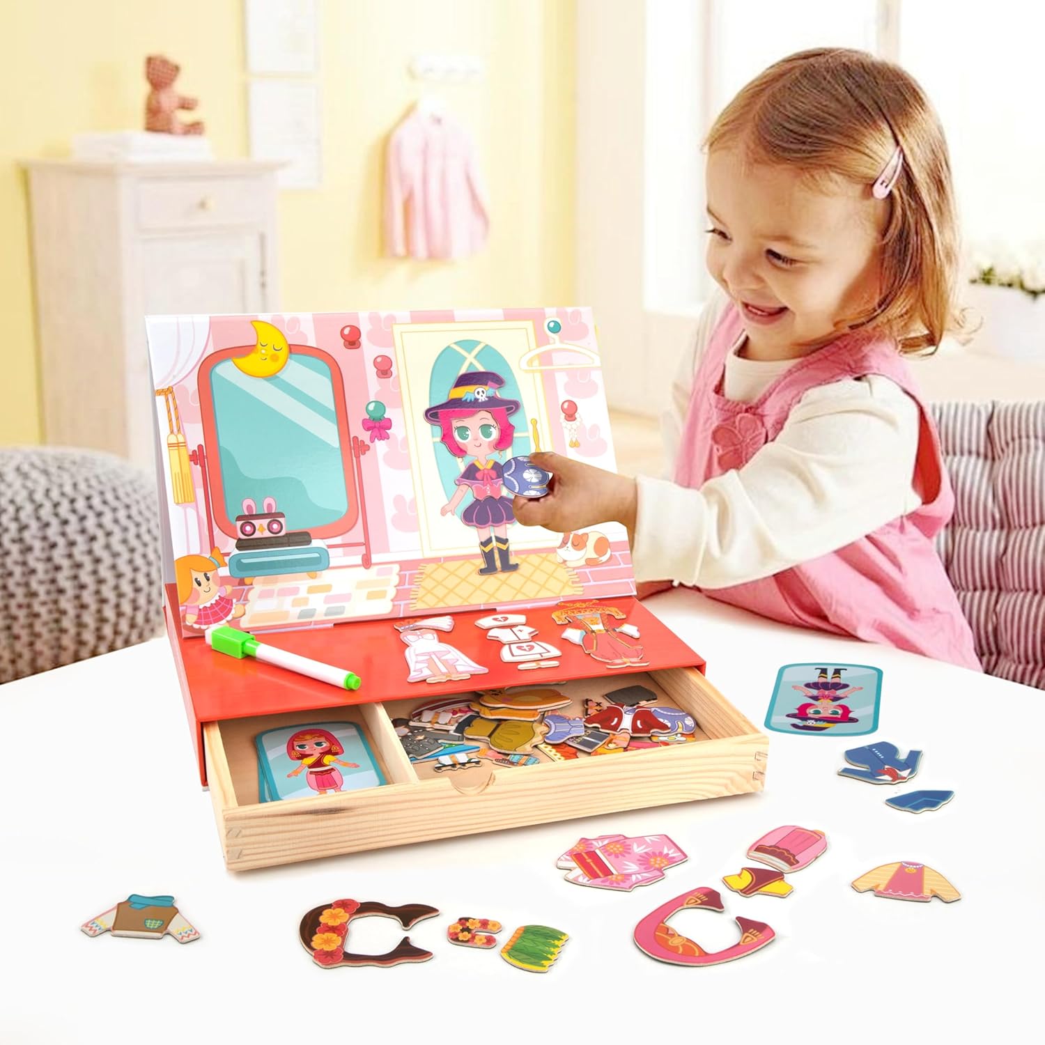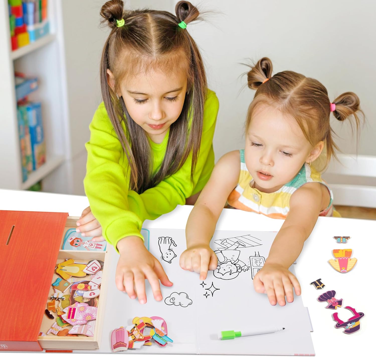 „Îmbracă fetița” este mai mult decât un puzzle – este o carte magnetică interactivă care aduce joaca creativă și educația într-o singură experiență. Un cadou ideal pentru copii de la 3 ani, care îi ajută să învețe și să se dezvolte prin joc.