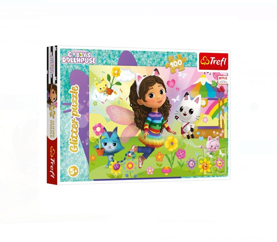 Transformă joaca într-o aventură magică alături de Gabby și prietenii săi cu acest puzzle fascinant de 100 de piese! Decorat cu detalii strălucitoare de glitter auriu, acest puzzle va captiva atenția celor mici și le va oferi momente pline de distracție și creativitate.